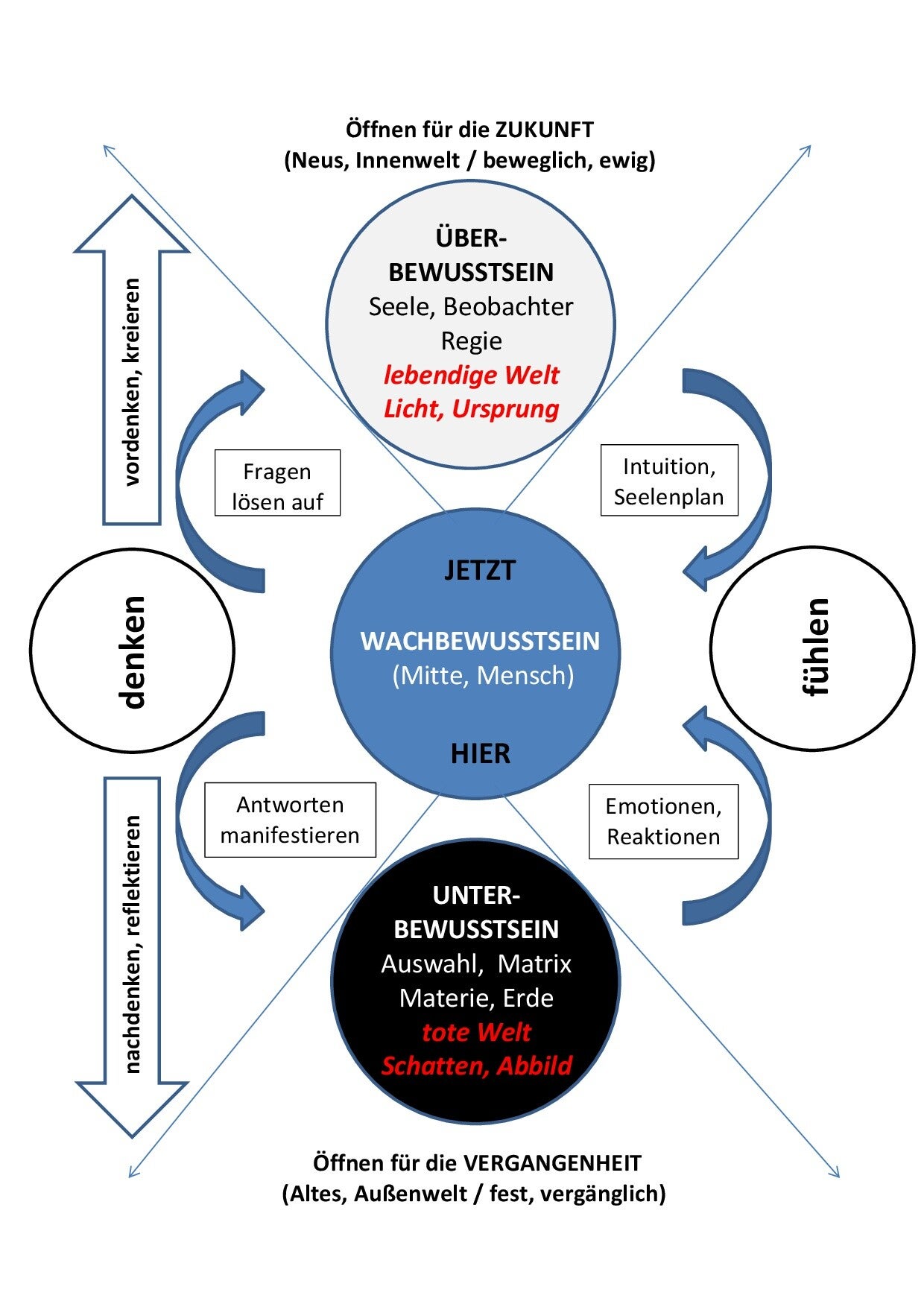 In beiden Fälle ist der Zugang zur hohen Bewusstseinsebene, die den erwünschten Urzustand wieder herstellt, versperrt. Man kann Bewusstheit nicht erarbeiten, Bewusstsein ist ein reiner Seinszustand, der nur in der Gegenwart existiert.